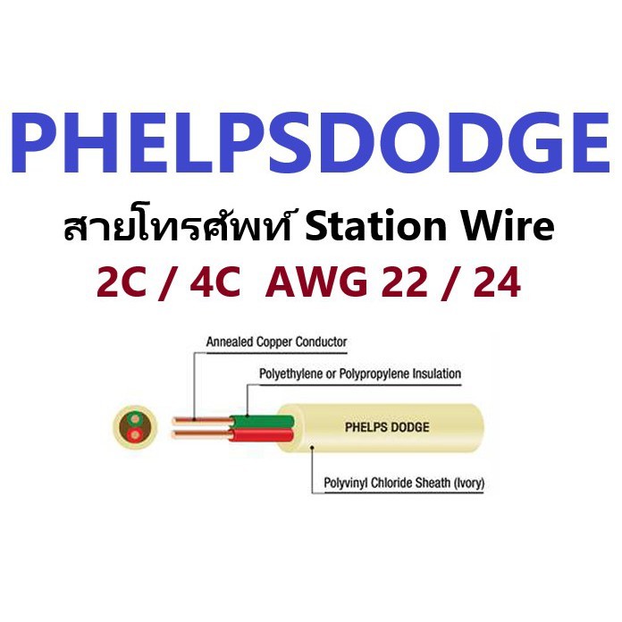 Specification: PHELPS DODGE สายโทรศัพท์ Station Wire 2C / 4C Awg 22 / 24